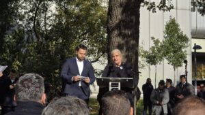 „Želimo da Evropa i svijet nikad ne zaborave šta se dogodilo u julu 1995. godine. Naša je obaveza da nove generacije uče na istini, a ne na zaboravu. Beč, kao sjedište UN-a i grad mira i multikulturalnosti, postaje domaćin trajnog znaka solidarnosti i ljudskog dostojanstva. Spomenik ‘Cvijet Srebrenice’ treba biti poruka svim generacijama i narodima da se genocid nikad i nikome ne smije ponoviti. On nije samo kamen ili čelik, to je naša savjest, naš glas i naš zavjet budućnosti“, naglasio je Saračević.
